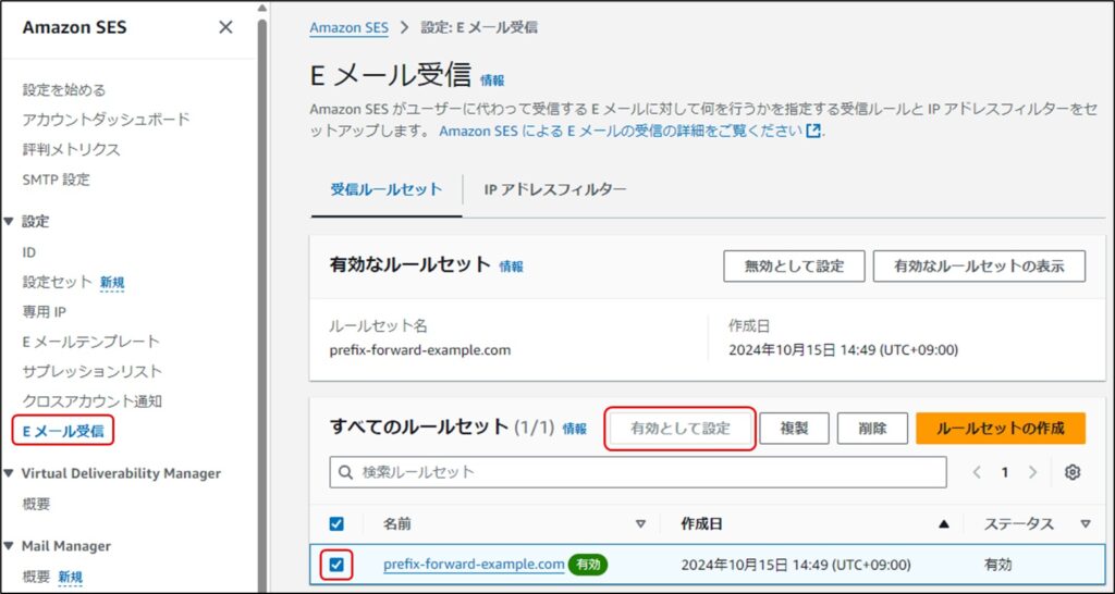 ルールセットは、リージョンにつき一つしか有効にできないので、他のルールセットが有効になっている場合は、ご注意ください。