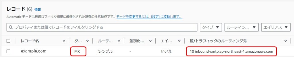東京リージョンの場合は、MXレコードに 10 inbound-smtp.ap-northeast-1.amazonaws.com を登録します。