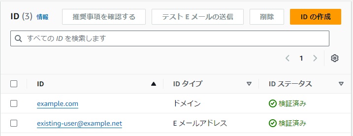 SESを使用してメールを転送するので、SESのIDに新規ドメインと転送先メールアドレスを登録します。