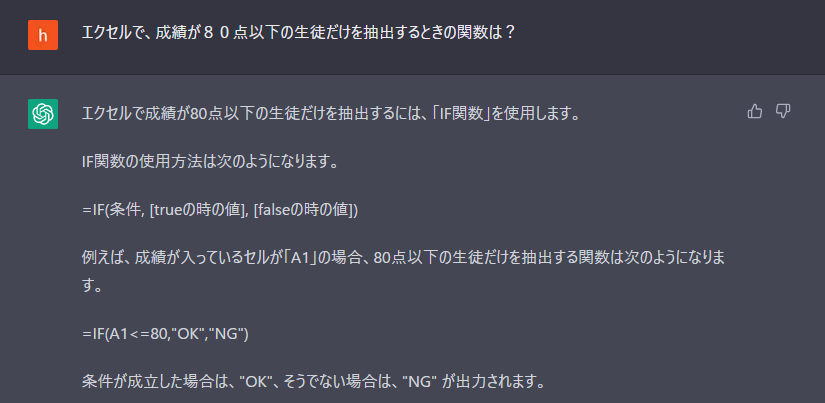 ■エクセルの関数が分からないときに質問すると、的確な返答が返ってきます。