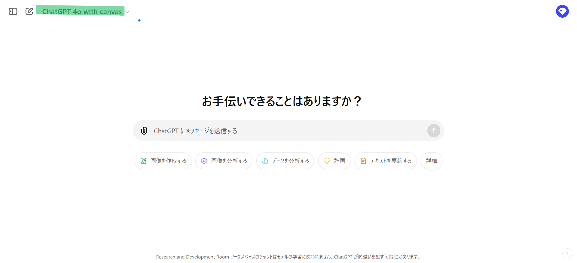 - プロンプトで「ブログの記事を書いて」や「Pythonのコードを書いて」などと入力するか、「use canvas」と入力するとCanvasのウィンドウが開きます。この機能を使うことで、必要なタイミングで即座にCanvasのウィンドウが起動し、効率的に作業を開始できます。