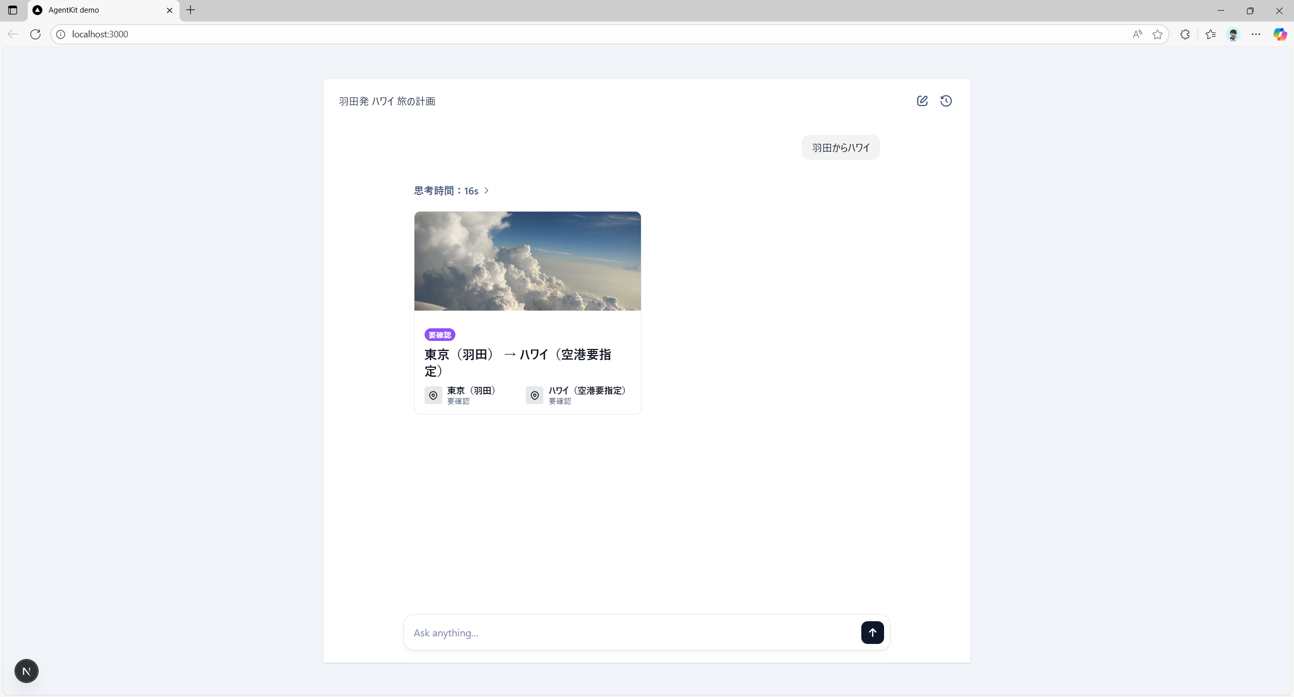 http://localhost:3000を表示し、エージェントを実行