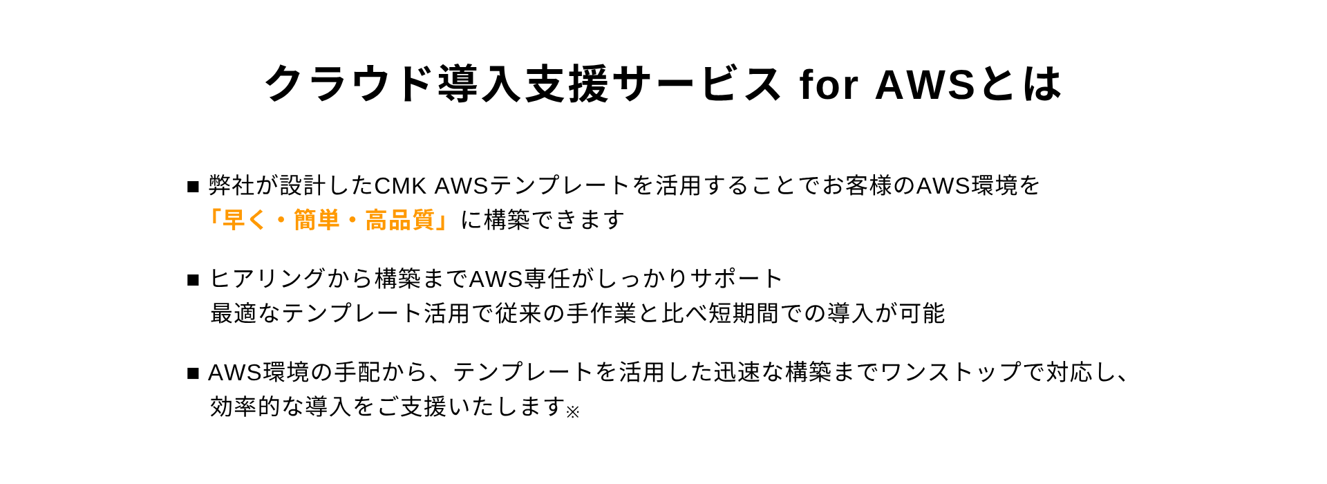 ※納品(導入)後1ヶ月間は当社が構築したAWS環境に関するQ&A対応を無償で実施いたします(※お客様構築環境は対象外)