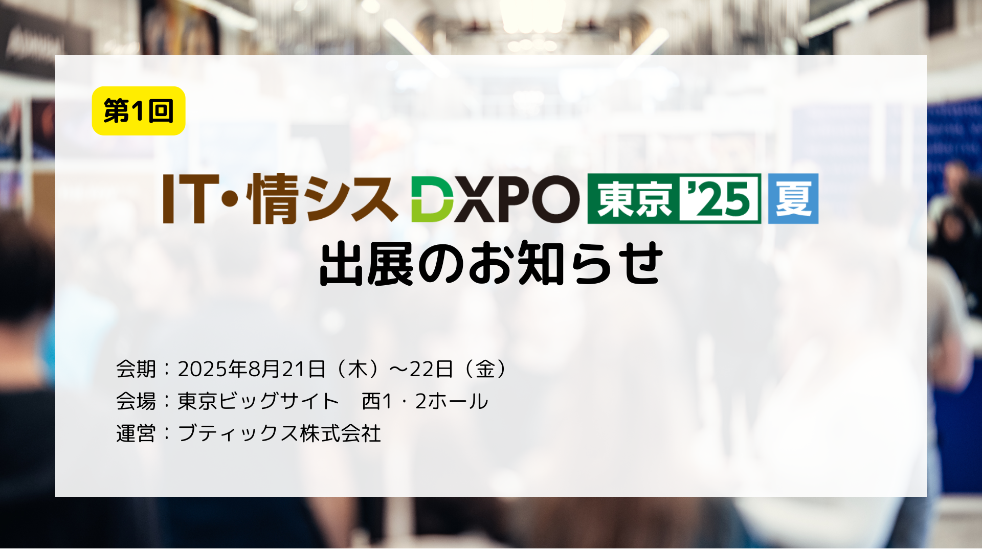 第1回「IT・情シスDXPO(ディーエクスポ)東京’25 夏」に出展いたします。