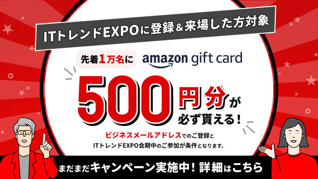 ※キャンペーン規約をご確認ください:https://it.expo.it-trend.jp/term/campaign/first-come-first-served