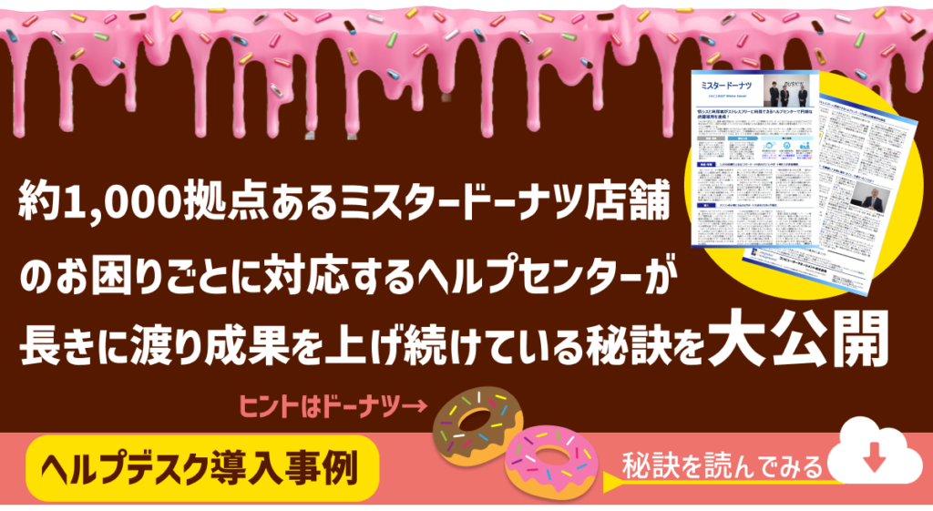 今から約30年前、日本国内約1,000拠点にもおよぶミスタードーナツの各店へ店舗システムの導入を行うことになり、その店舗システムの問い合わせ先として、ヘルプセンターを設けることになった株式会社ダスキンのご担当者様にお話をお聞きする事ができました。