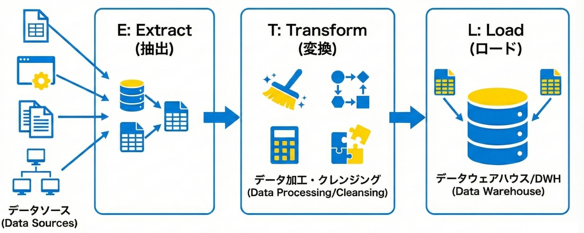 近年ではiPaaSがETL機能を取り込み、定義の境界線が曖昧に捉えられるケースもありますが、データ分析基盤の構築においてはETLが依然として主流とされています。