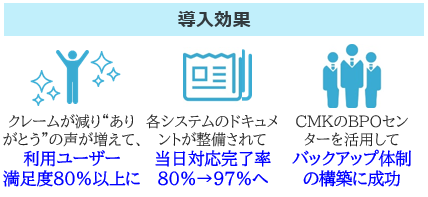 色々とご検討頂いた結果、ヘルプデスクを外注化するにあたり、弊社(コンピューターマネージメント株式会社 以下、CMK)のBPO部門が提供している『ヘルプデスクサービス』を導入いただきました。
