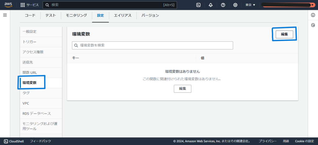 OpenAIのAPIを動かすにはAPIキーの情報が必要です。Lambda関数でAPIキーを使用できるように設定します。