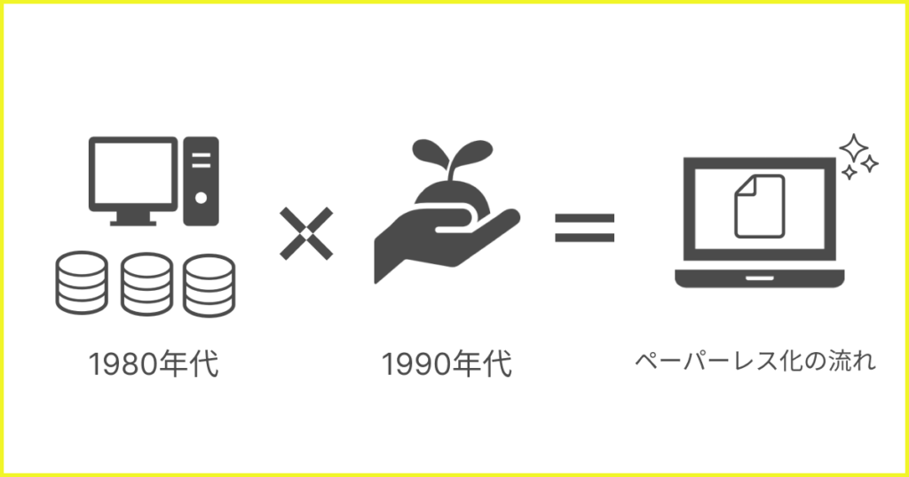 その根源をたどると、1980年代のコンピューターを用いたデータ管理の便利さと、1990年代以降のサステナビリティへの意識の高まりに行き当たります。この2つの要素が組み合わさり、ペーパーレス化を推進する大きな流れが生まれたのです。